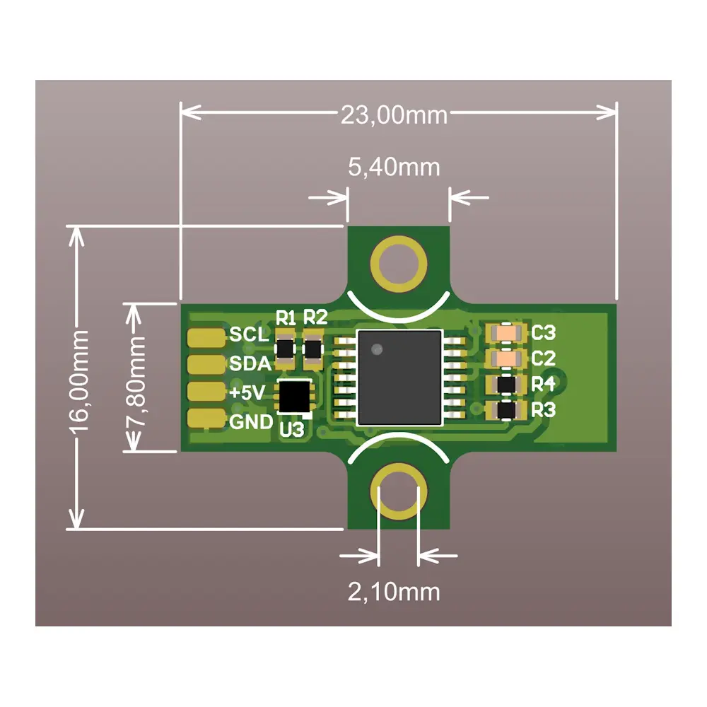 The module is similar to the regular AS5048B module, but using a small size PCB. The PCB is specially designed to fit into the removable housing of iFlight motors.