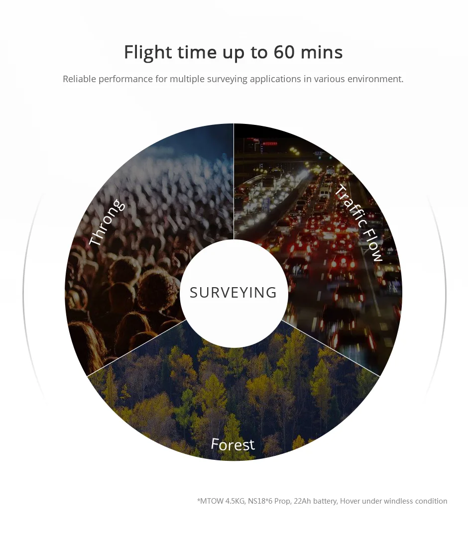 • Quadcopter of 4.2kg, 60mins flight time