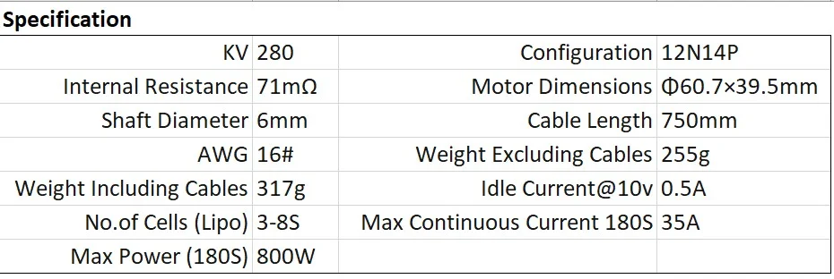 Notes:The test condition of temperature is motor surface temperature at 100% throttle while the motor run 10min.