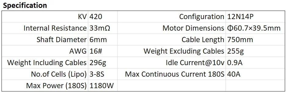 Notes:The test condition of temperature is motor surface temperature at 100% throttle while the motor run 10min.